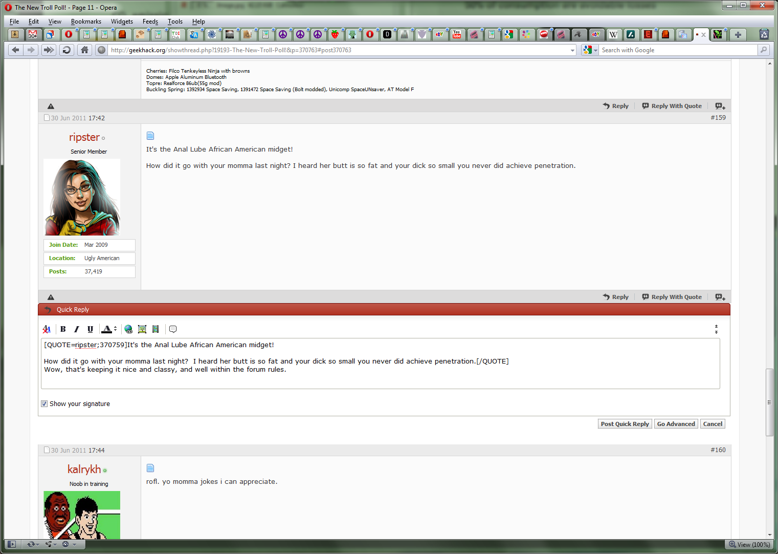 My fav is still the Mensa Maturity Midget and calling KeyboardLover a "nonentity". That one cracked up my son.
