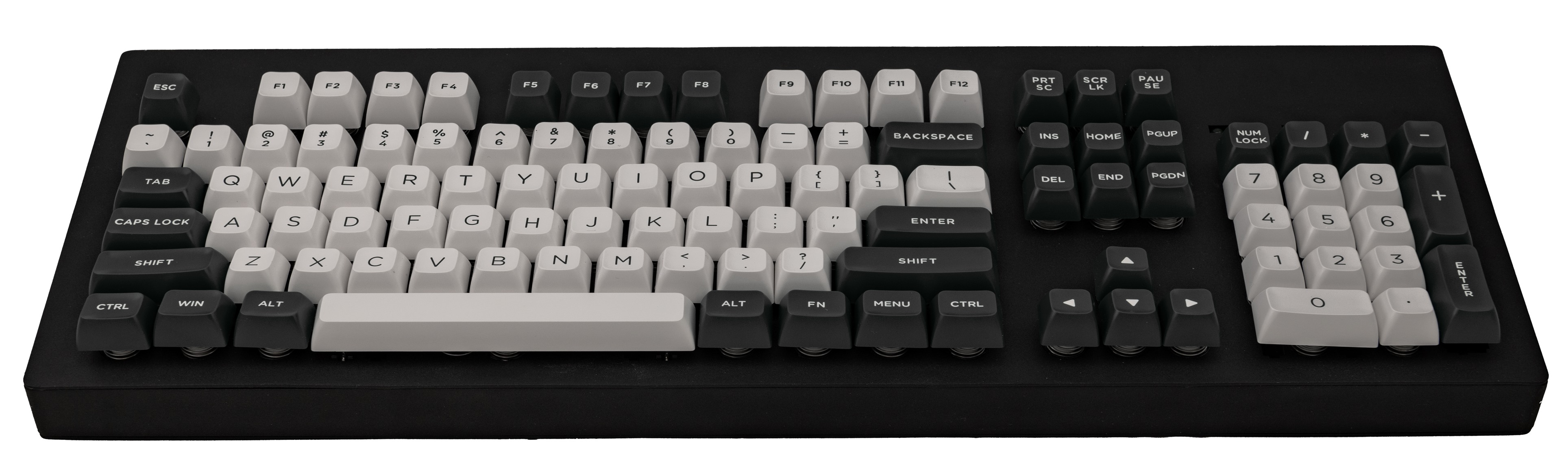 Choice of 2 MX-compatible PBT double shot key sets. The key sets are US ANSI but with additional keys so you can make an ISO and/or HHKB style layouts, with one exception: the ISO Enter key is a separate purchase for all key sets; it is not included in any key set. Important: you only get the keys pictured above, even if you order a Beam 122 key keyboard, or ISO or HHKB style layout, so you will have to make do with these keys or try your own keys. There may not be enough keys in the included key set to cover the 122 key keyboard the way you want it.