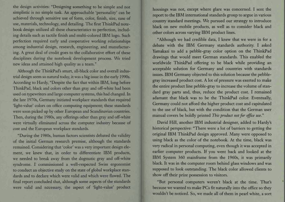 I was reading the Thinkpad book. "Thinkpad a different shade of blue." I had seen this section before about how in the late 1970s Germany introduced new workplace laws. These laws as well as other concerns basically resulted in most things being gray or off white.